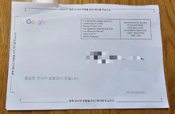 • 우편물 겉면에 Google AdSense 로고가 있어 쉽게 인지할 수 있어요.