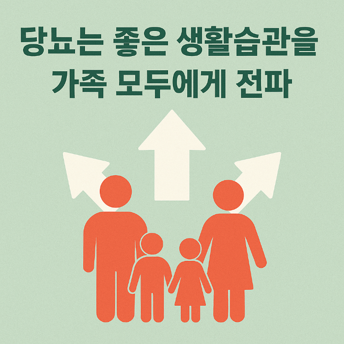 👉 좋은 생활습관을 가족 모두에게 전파하면, 당뇨 환자가 가족 건강의 지킴이가 될 수 있습니다.