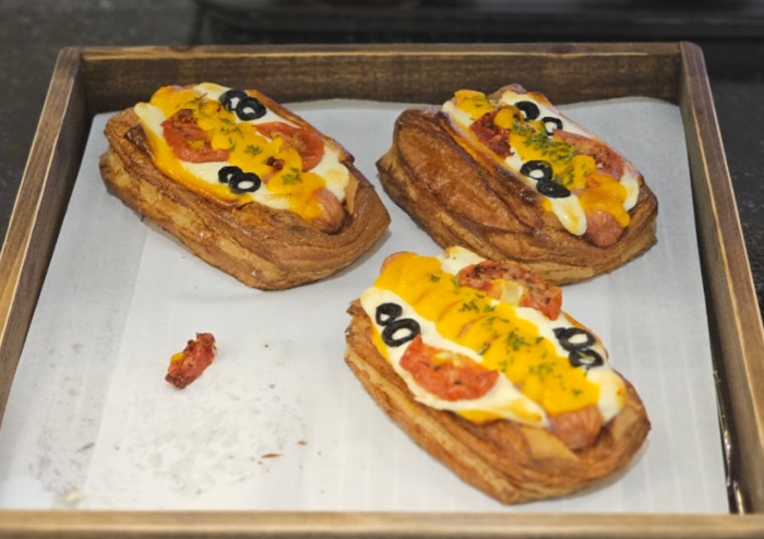 옆으로는 치즈가 듬뿍 올라간 치즈 브레드,