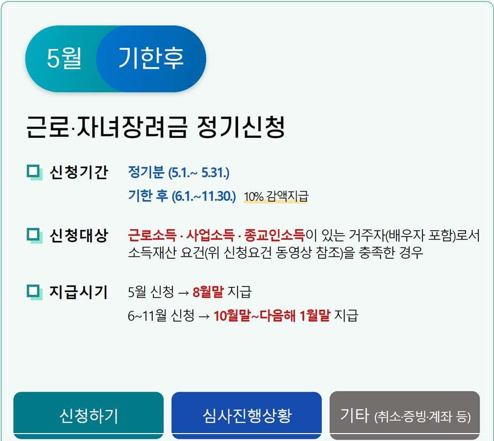 근로.자녀 장려금 정기신청