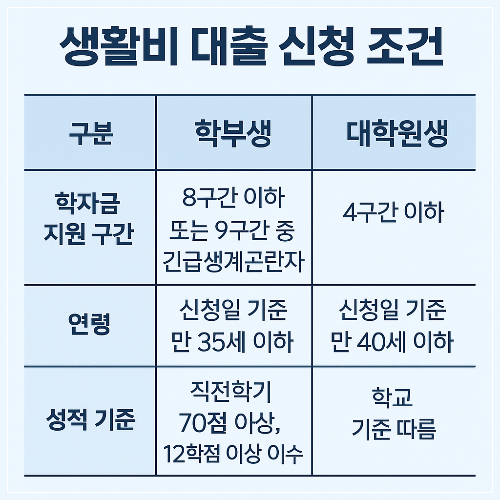 - 생활비 대출: 학기당 최대 200만 원 (연 400만 원 한도)