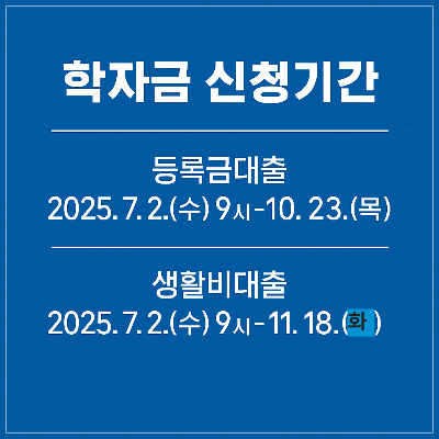 - 등록금 대출: 2025.07.02(수) ~ 10.23(목) 18시